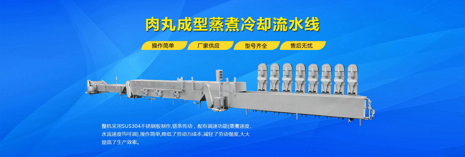 公司主要生產(chǎn)不銹鋼制品食品機械:各種規(guī)格型號真空滾揉機、制冷滾揉機、提升機、電加熱夾層鍋、肉丸機、真空攪拌機、絞肉機、灌腸機、打卡機、線扎機、斬拌機、鹽水注射機、煙熏爐、油炸機、巴氏殺菌線、連續(xù)油炸線、肉丸成型水煮線、醬鹵生產(chǎn)線、肉丸破碎機、真空包裝機、洗袋風干機、豬頭劈半機、不銹鋼火腿模具、肉斗車、案桌、煙熏車、屠宰類機械設備、清洗風干設備、肉類解凍設備、滾筒拌料機等。產(chǎn)品廣泛適用于火腿腸、肉丸、肉串、鹵制品、海產(chǎn)品、禽類深加工、油炸、泡椒風味、速凍水餃、魚豆腐、千葉豆腐、豆腐干、牛肉干、牛排雞排類、禽蛋、麻辣、休閑、水果蔬菜清洗、中央廚房、餐飲連鎖、寵物食品等食品生產(chǎn)。